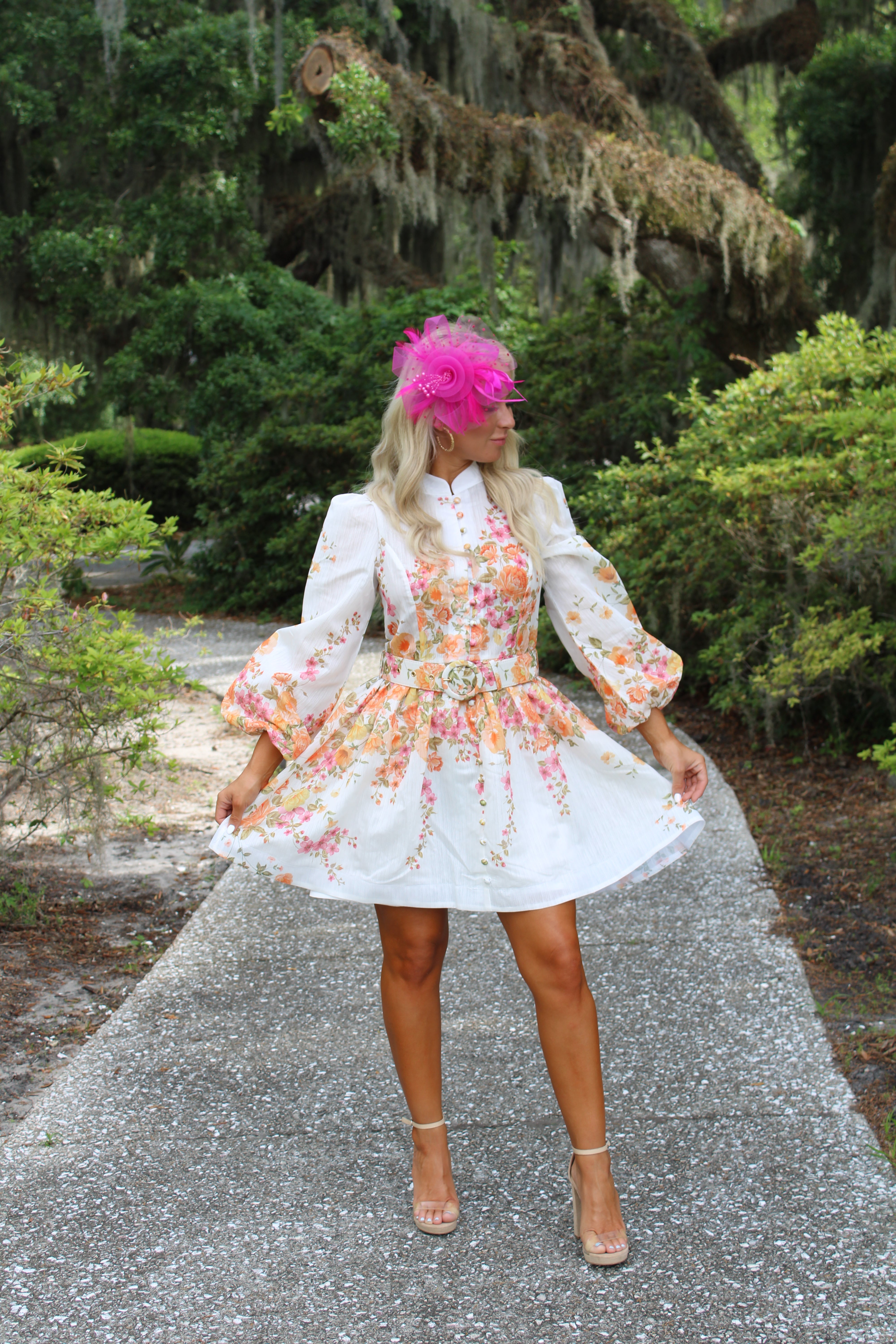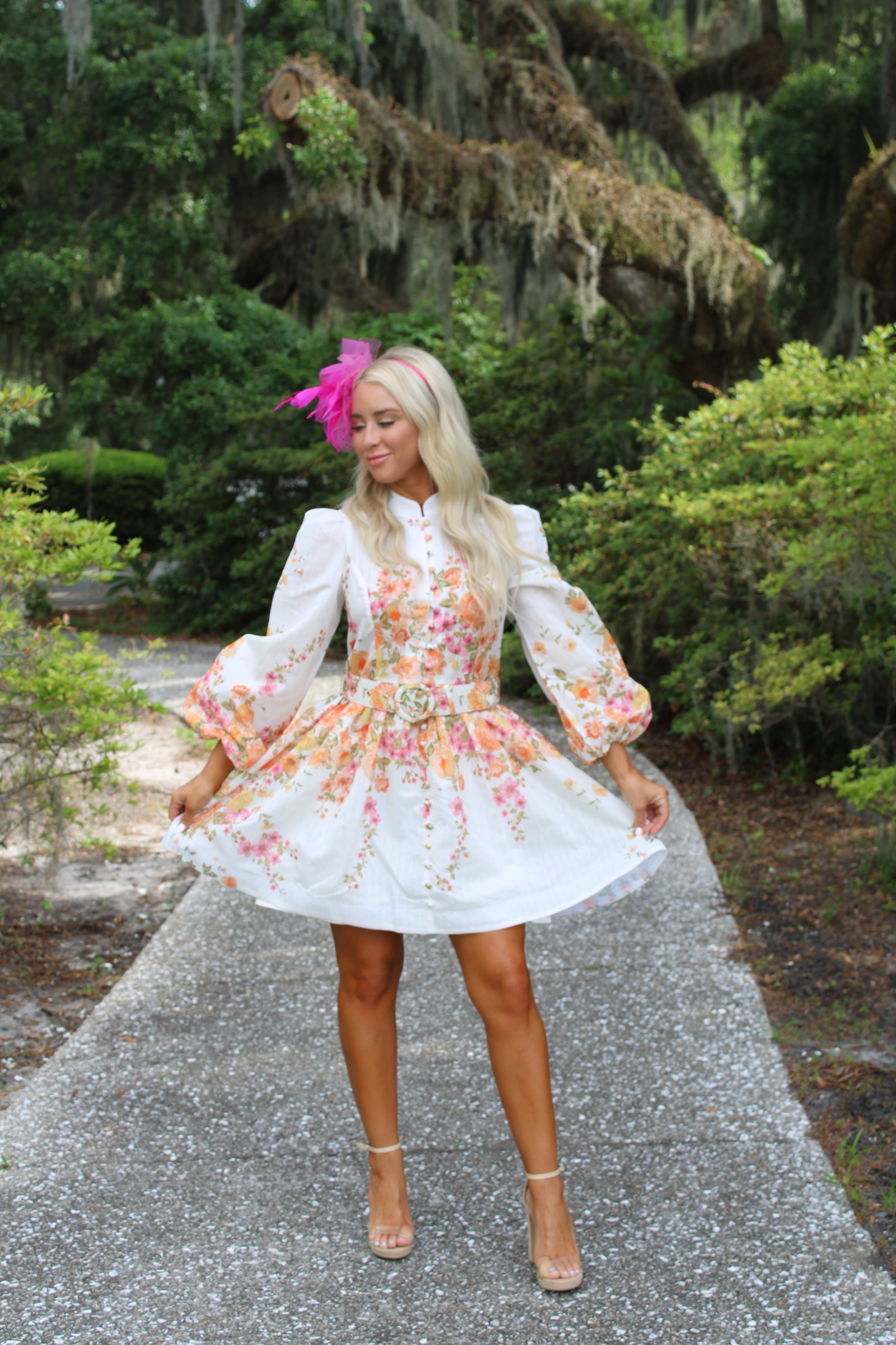 Our Anastasia Mini Dress features a mock neckline with front button detailing and adjustable belt. She’s stunning for bridal showers, brunch or GNO!