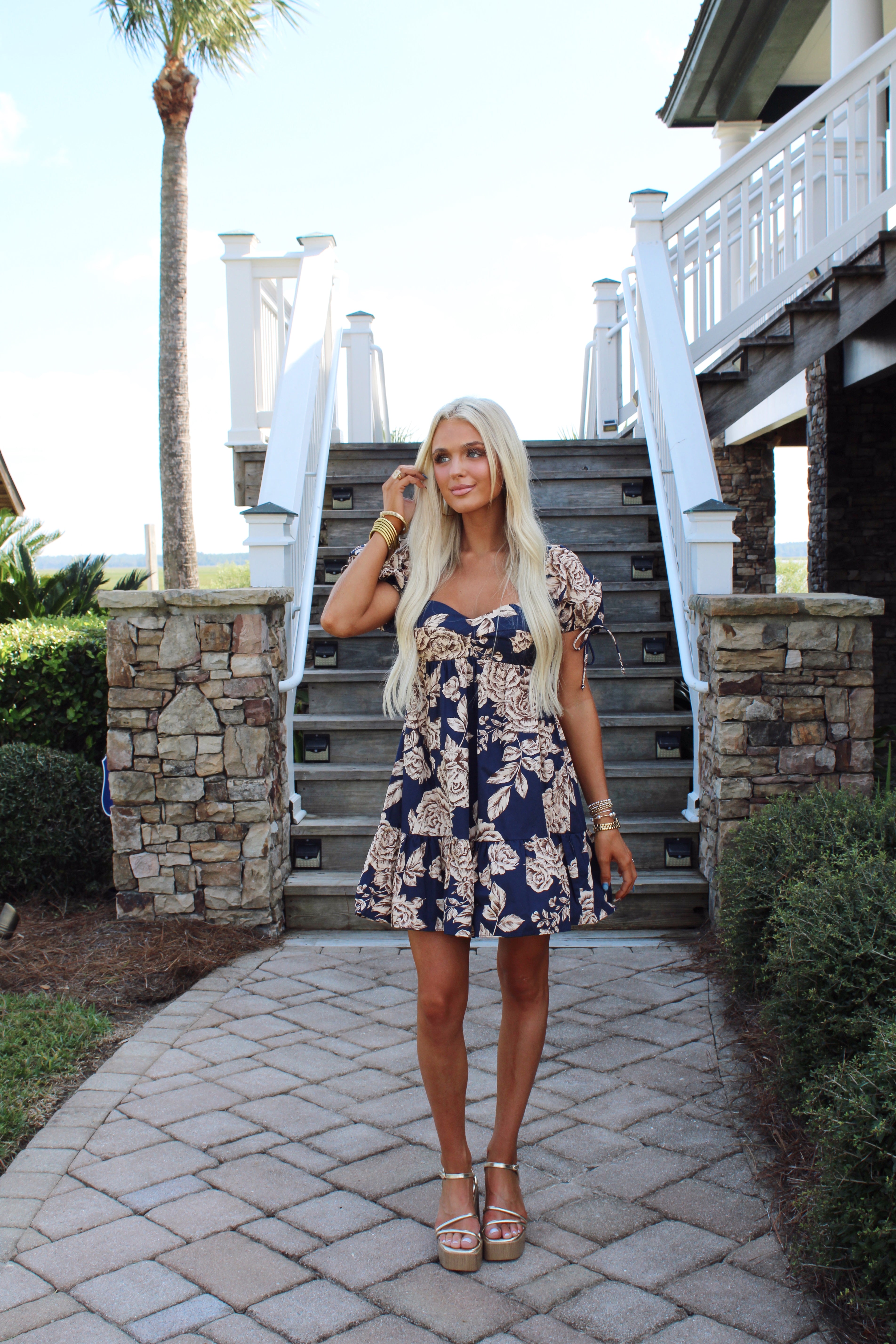 Introducing our Madeline Mini Dress! This dress is made up of a midnight blue and cream colorway that is beyond beautiful! It’s baby doll flounce hem and bubble sleeve makes for the girliest look for fall!