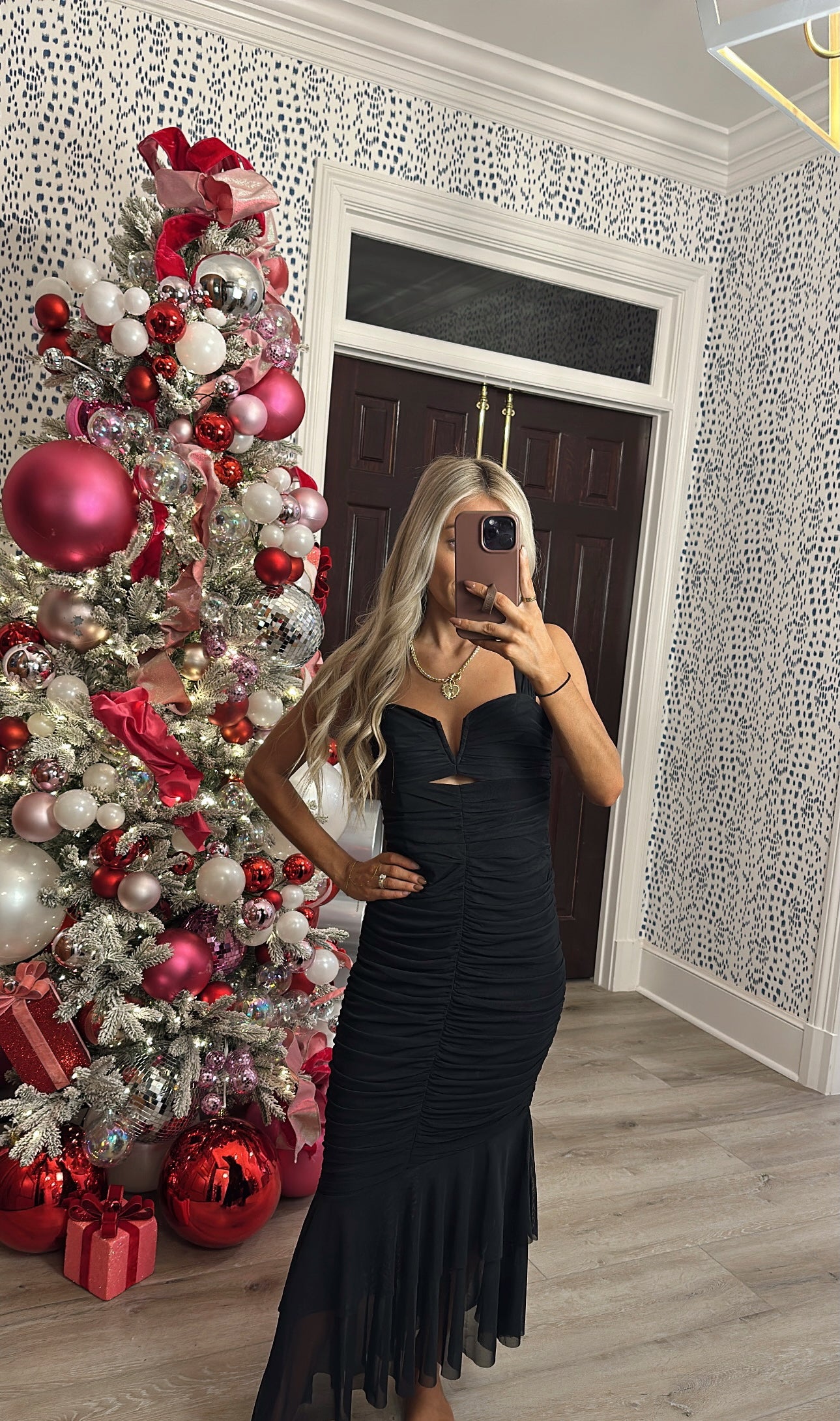 Wanna play mermaids?? This dress features a mesh material, bodycon fit to enhance the perfect body figure. The fish tale hemline detail and front cutout detailing adds a touch of spice!