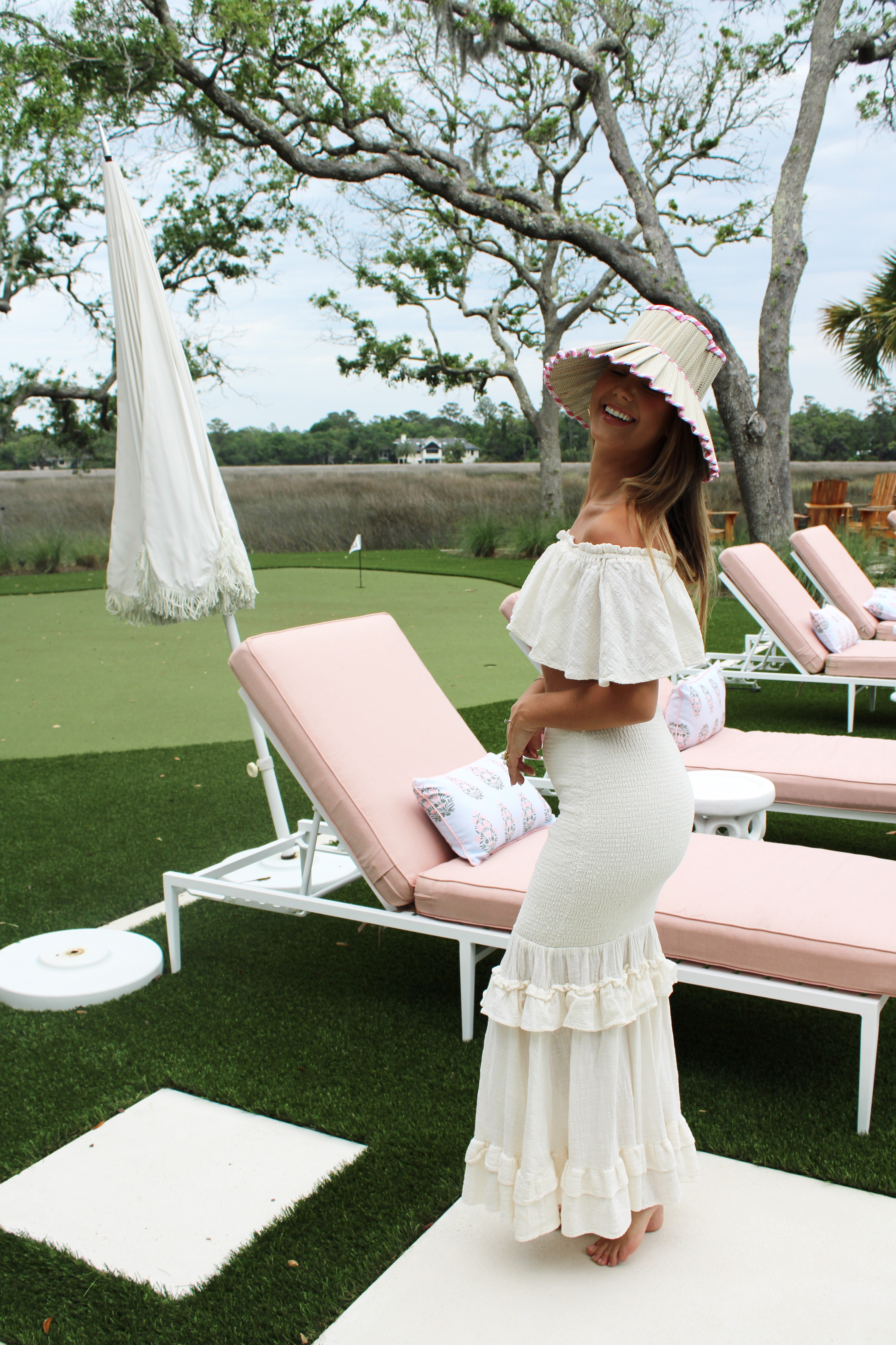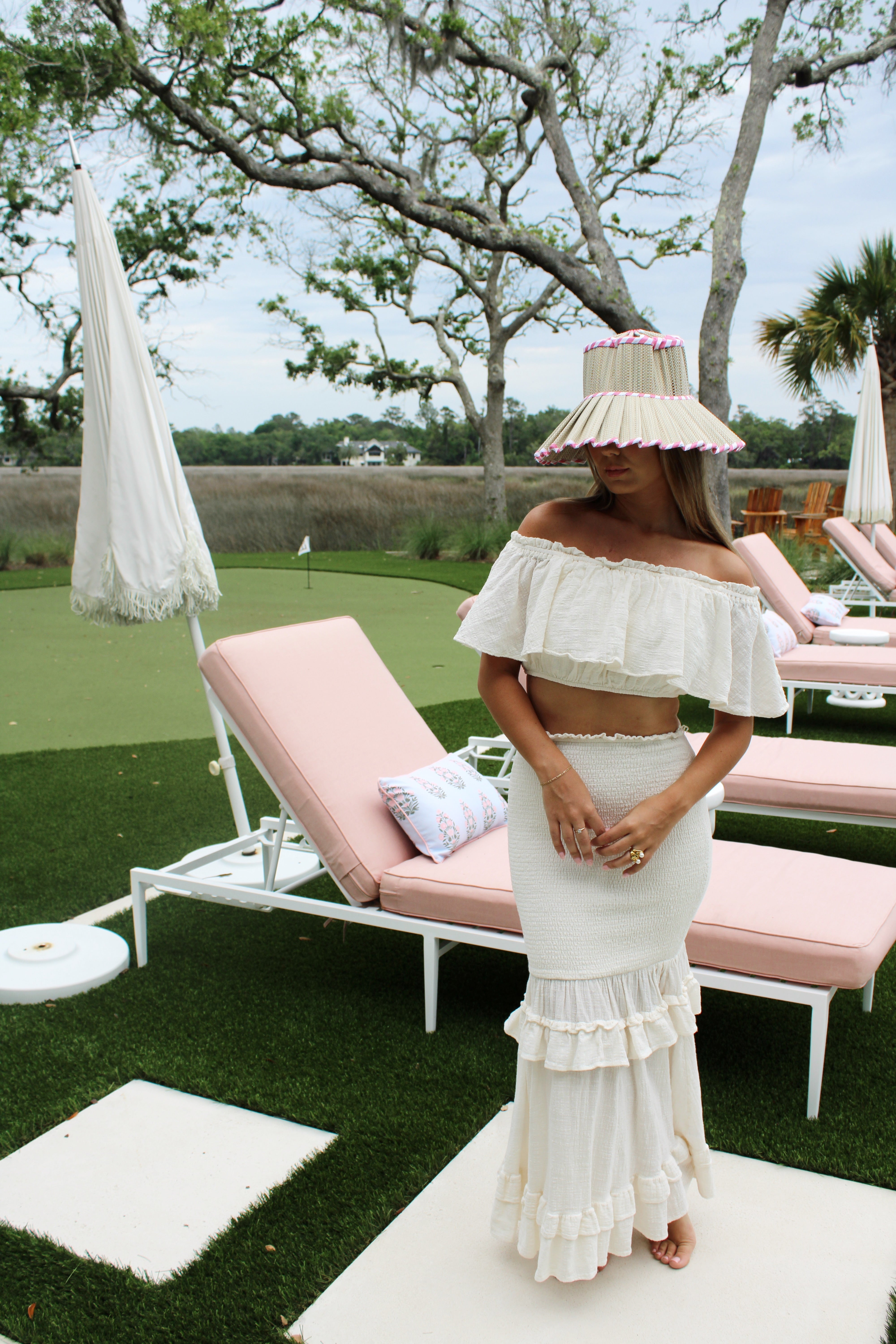 Introducing our Pearl Mermaid Skirt Set! This set features a beautiful mermaid style midi skirt with a ruched waist line. The Mini top crop features off the shoulder, flowy sleeves for the perfect beach look!