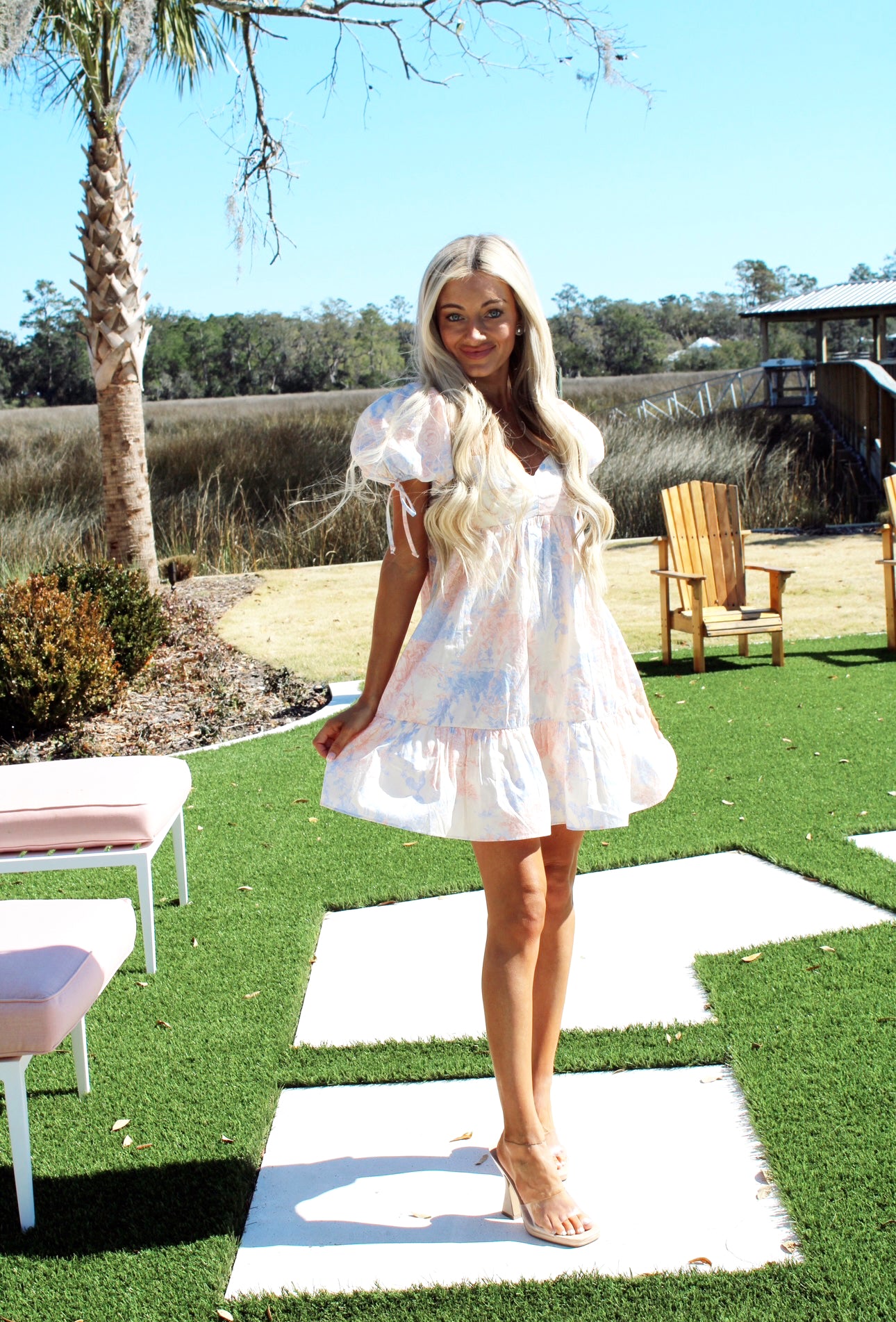 Our Riley Baby Doll Dress features a bustier top and puff sleeve. It has tie detailing on the sleeves and ruffle detailing near the skirt area. It gives the most perfect coquette aesthetic!